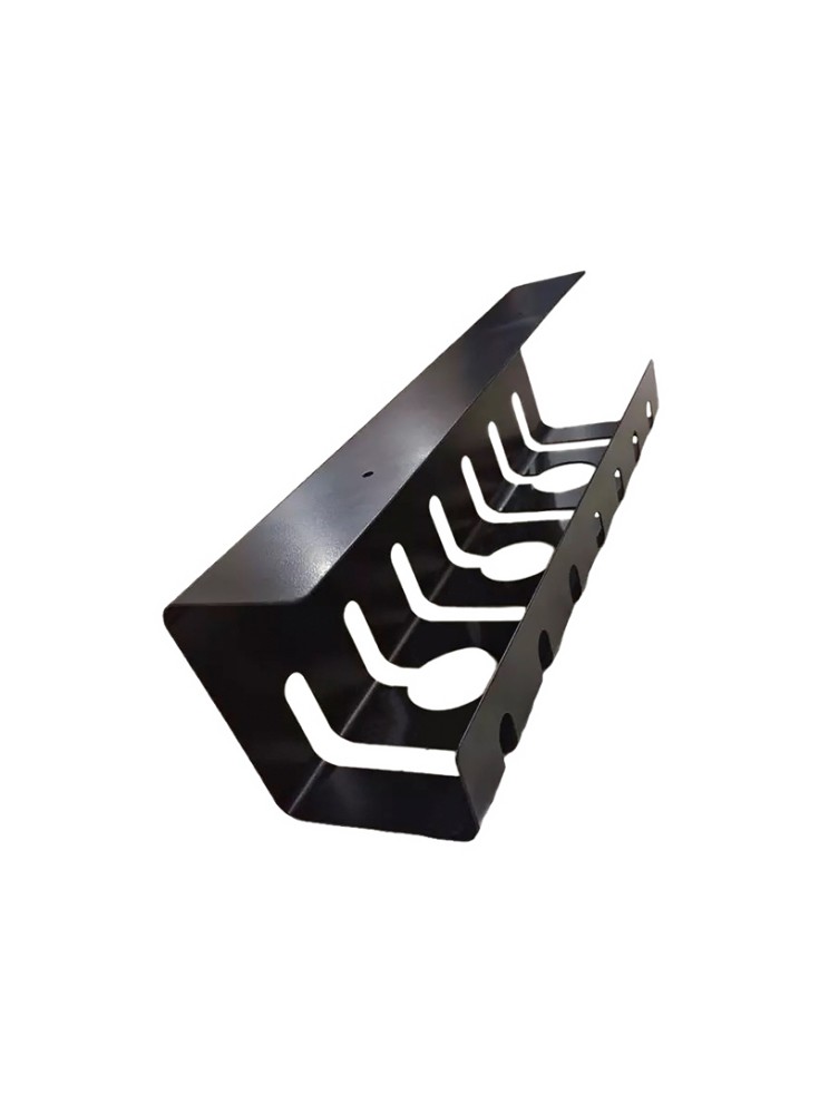 The surface is treated with a black powder coating, providing scratch resistance and a sleek matte black finish that is both practical and stylish, seamlessly blending into any office or home environment. The tray’s design allows for easy under-desk installation, keeping cables organized, preventing tangling, and improving workspace efficiency.