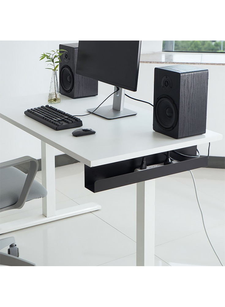 The Steel Under-Desk Cable Management Tray is designed to provide an efficient and tidy solution for organizing cables, keeping your workspace neat and clutter-free. Suitable for both sit-stand desks and traditional desks, it allows you to hide power cords, network cables, and computer wires, maintaining a clean and open visual workspace.