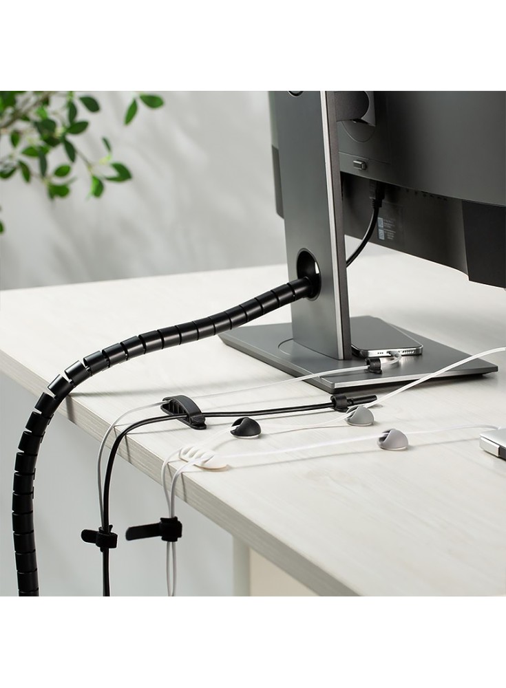 Place cables into the clip and attachments, securing them to the desk or under the desk. Adjust the position to the desired height and angle to achieve a neat and safe cable management solution.