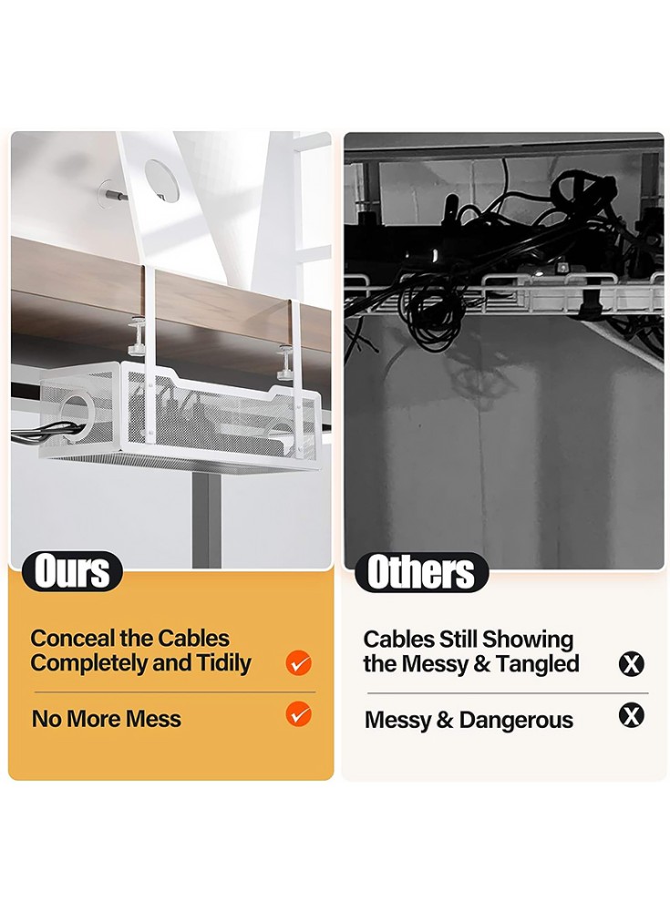 Say goodbye to cluttered desktops and create a more organized, efficient workspace. This Desktop No-Drill Cable Management Tray is made of high-quality metal, providing durability and long-lasting stability.