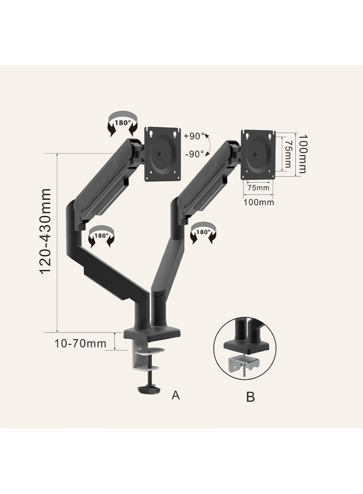 This dual monitor desktop stand is crafted from high-quality, durable metal, providing a stable and reliable support for your workspace. Designed to meet the diverse needs of modern office and home setups, it accommodates two screens simultaneously, making multitasking effortless and improving work efficiency.