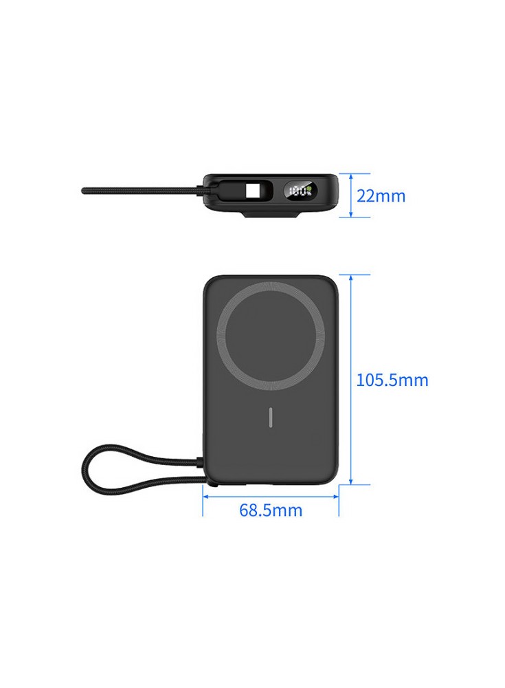 The Portable Fast-Charge Power Bank is designed with a slim and lightweight body, combining magnetic wireless charging with high-efficiency fast-charging technology. It delivers safe, stable, and rapid power for your smart devices anytime and anywhere—perfect for daily commutes, business trips, or travel.