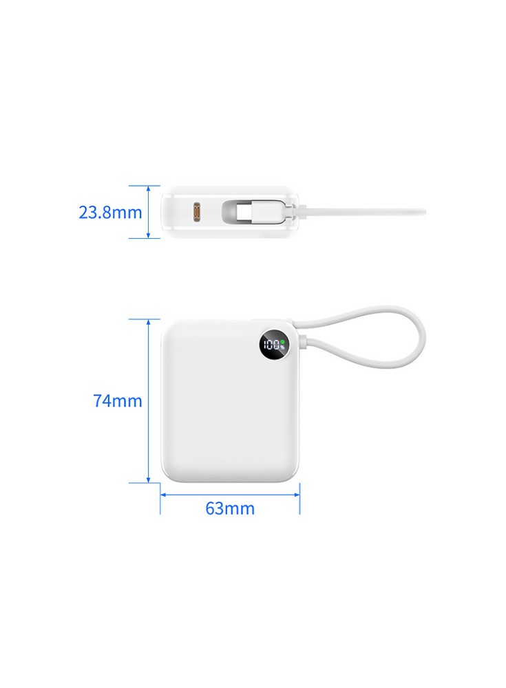 Designed with a sleek and minimalist style, the Mini Power Bank is lightweight and easy to carry. Slip it into your pocket, handbag, or backpack effortlessly. Perfect for travel, office use, or daily outings—power is always within reach.