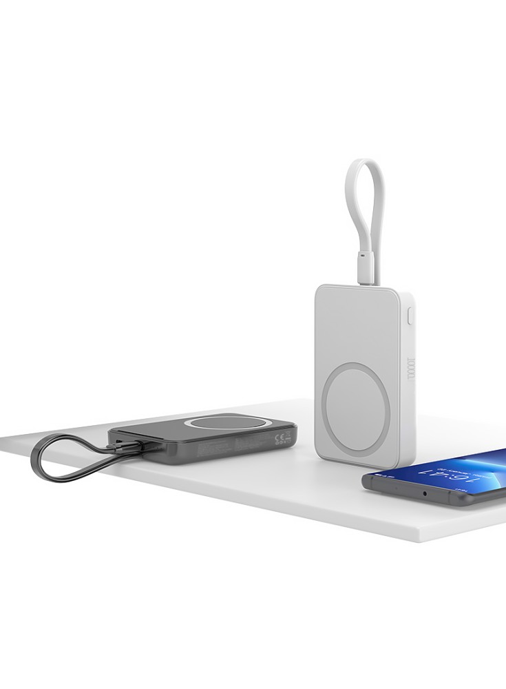 The design is sleek and minimalist, with a compact body that is easy to carry in your bag or pocket. Whether for daily commuting, business trips, or travel, the Magnetic Power Bank with Built-in Cable is a reliable companion that keeps your devices powered wherever you go.